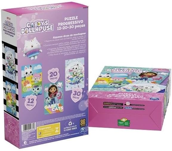 Quebra-Cabeça Progressivo 12,20 e 30 Peças Gabby´s Dollhouse