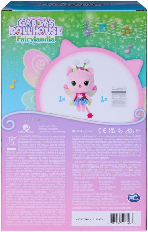 Gabby’s Dollhouse – Pelúcia Kitty Fada de 30cm com Som e Luz