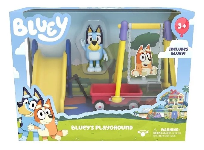 Na embalagem acompanha, além do Playground , um personagem da Bluey, o restante da turma, pode ser adquirido separadamente.