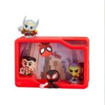 Ao abrir a cápsula, surge um universo de possibilidades, com personagens icônicos como Homem-Aranha, Capitão América e outros favoritos dos fãs.