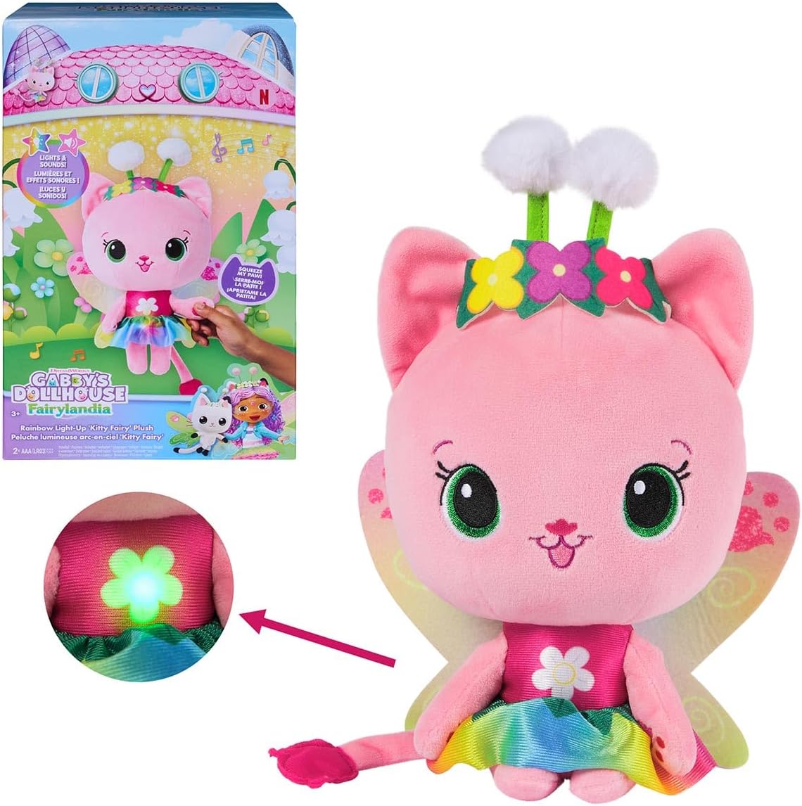 Gabby’s Dollhouse – Pelúcia Kitty Fada de 30cm com Som e Luz
