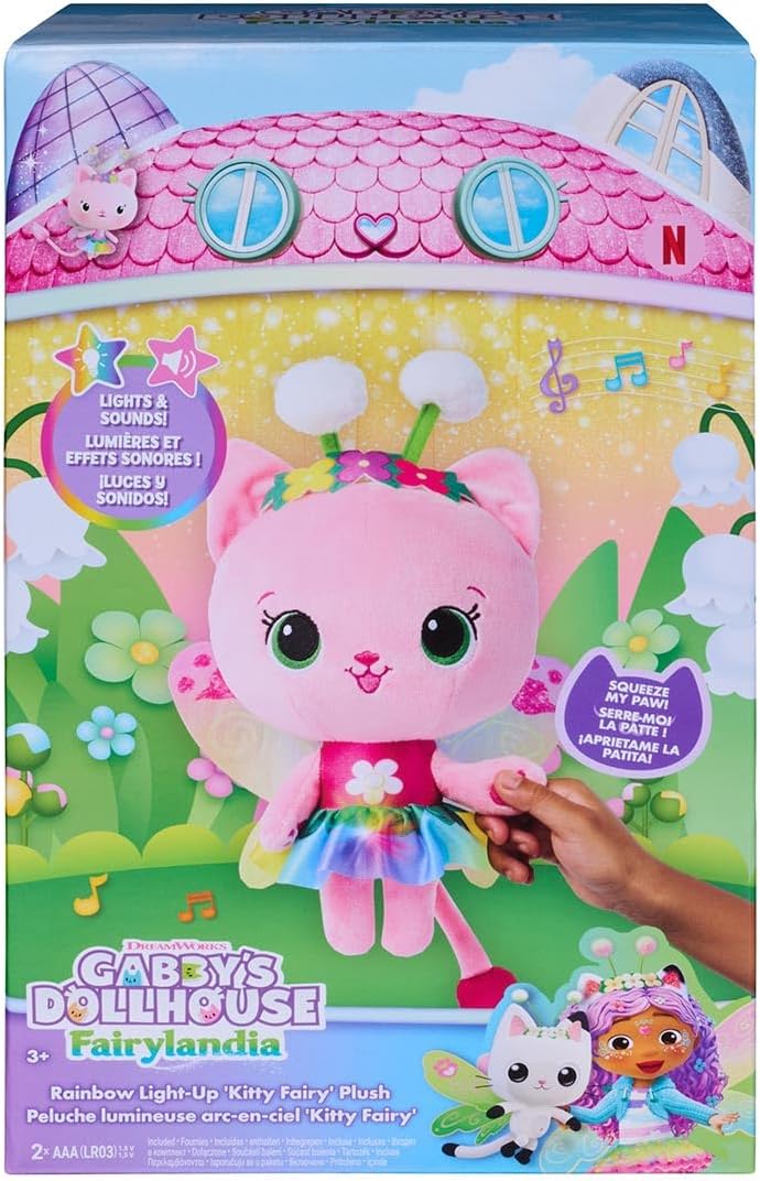 Inspirada nos episódios Fairylandia de Gabby’s Dollhouse, Kitty Fairy convida para abraços mágicos, aventuras imaginativas e histórias de amizade, trazendo a fantasia das fadas diretamente para perto de quem a acompanha.