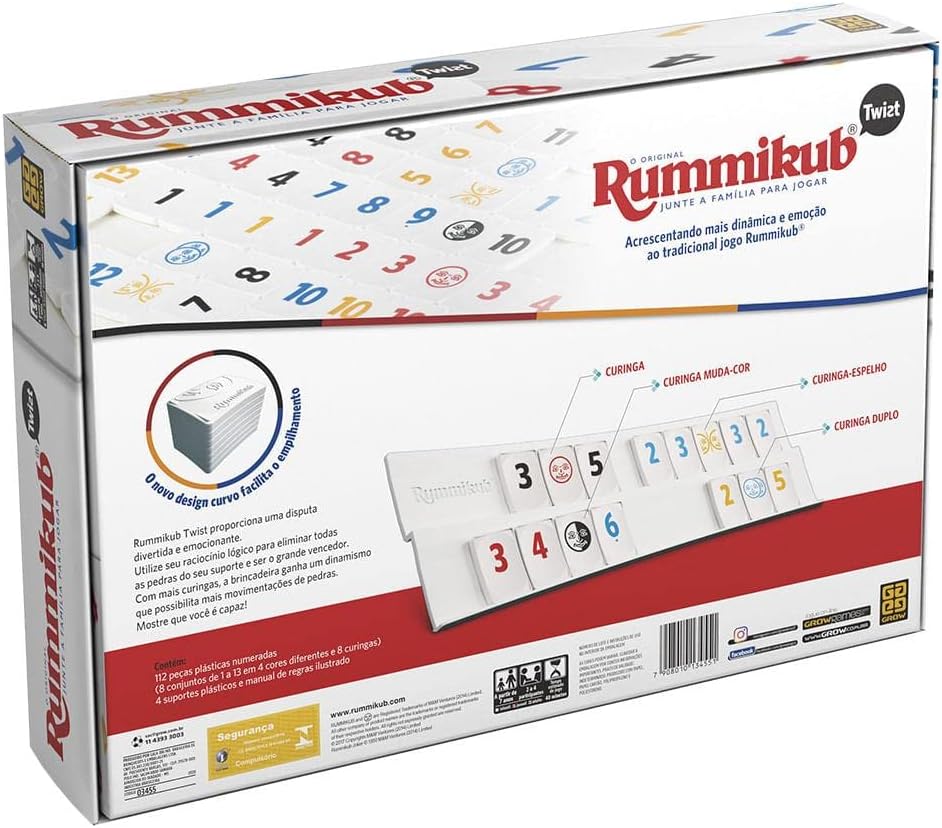 A versão Twist traz mais 3 curingas que oferecem mais alternativas de jogos para você: Curinga-espelho, o Curinga Muda-Cor e o Coringa Duplo, que se juntam ao Curinga padrão. Além de novo visual as pedras com design curvo que facilitam o empilhamento e suporte panorâmico curvo.