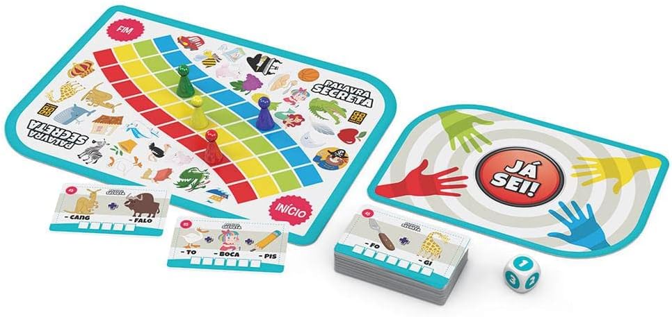 O jogo Palavra Secreta é ideal para partidas de 2 a 4 jogadores a partir dos 7 anos de idade.