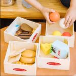 Conjunto de comida de madeira resistente com itens dos cinco grupos de alimentos para uma brincadeira saudável.