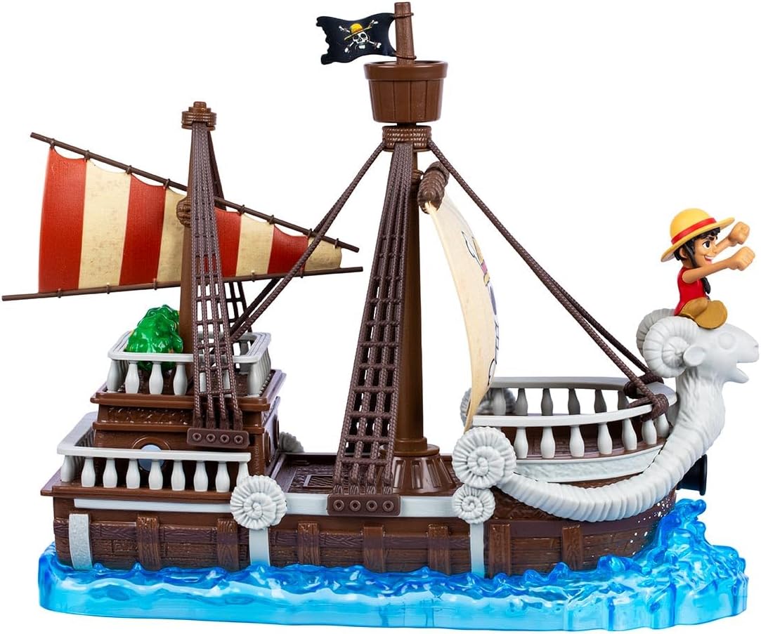 Cada detalhe conta histórias de coragem, amizade e liberdade pelos mares de One Piece. A proa com a cabeça de carneiro parece liderar a viagem, enquanto Luffy, em miniatura, levanta os braços com seu chapéu de palha, pronto para descobrir novos horizontes. Velas com o Jolly Roger lembram o espírito destemido da tripulação, e o navio sobre ondas estilizadas convida a imaginar tempestades enfrentadas, ilhas exploradas e momentos épicos vividos a bordo.