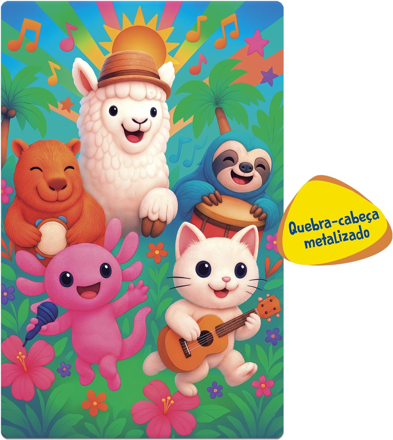 Entre em um mundo encantado cheio de animais fofuxos e brilhos mágicos! Com 100 peças e detalhes metalizados que encantam os olhos, este quebra-cabeça é perfeito para crianças a partir de 6 anos. Uma brincadeira que desenvolve coordenação motora, foco e imaginação — tudo com uma dose extra de fofura!