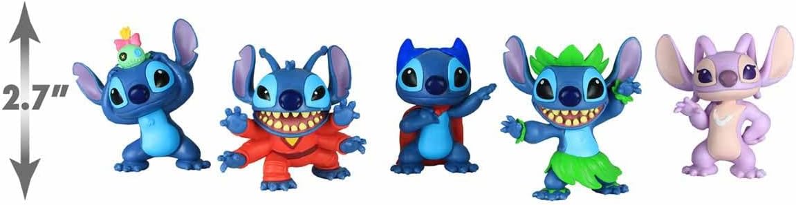 Leve para casa as aventuras de Lilo e Stitch da Disney com este conjunto colecionável com 5 mini figuras de 7cm. Elas são altamente detalhadas e se parecem examente como no filme. O conjunto inclui 4 figuras do Stitch, em poses mega divertidas, e 1 figura da Angel.