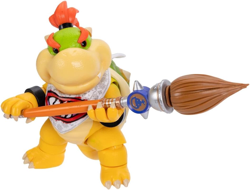 A figura do Bowser Jr. é inspirada no filme e vem com detalhes premium, incluindo 17 pontos de articulação. O Bowser Jr. vem com um pincel como acessório, tudo apresentado em uma caixa com janela.